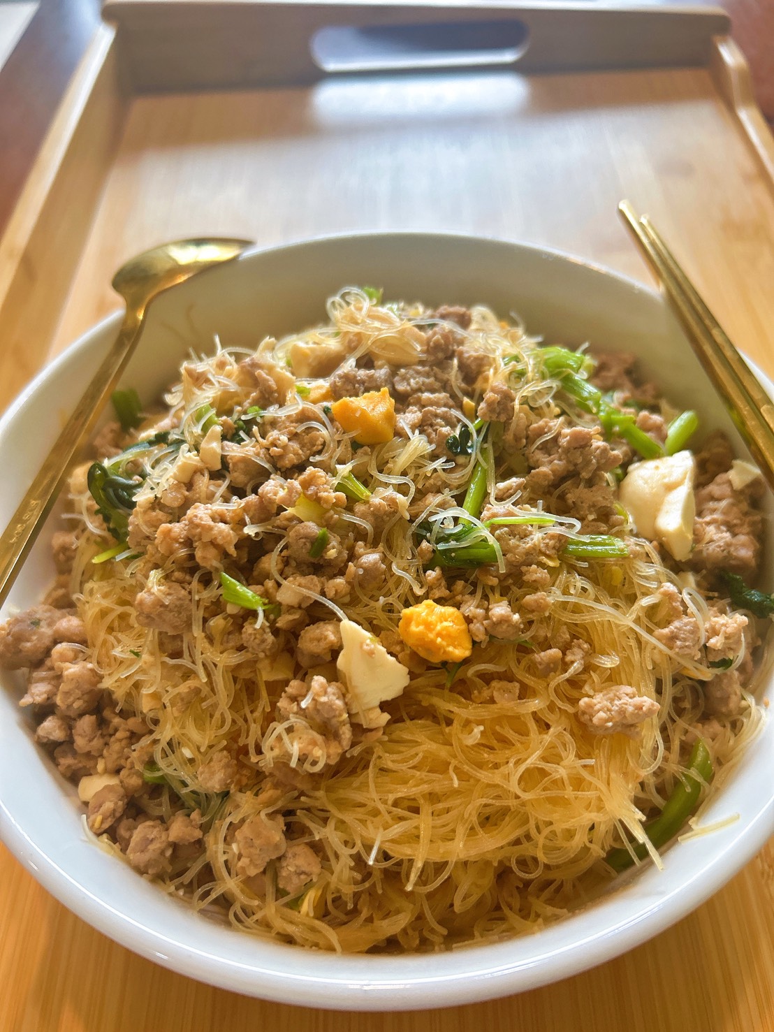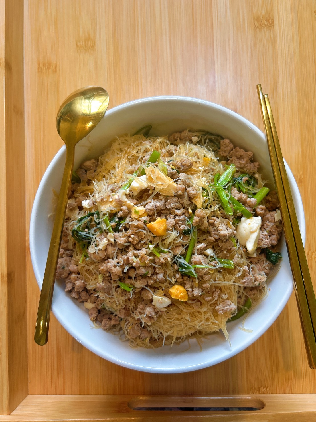 雞油蔥料理-古早味鹹蛋肉末米粉(附影片)