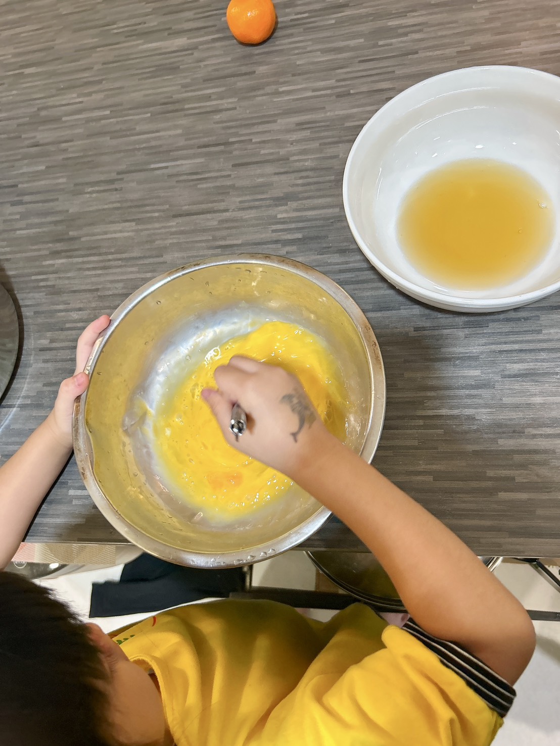 打了兩顆蛋,蛋殼留半顆,水用滴雞精來取代。